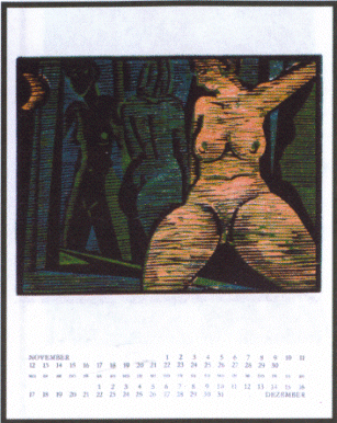 Müller zu Christa Kozik "nein, ich will ..." Farbholzschnitt (3 Platten) 2006 |